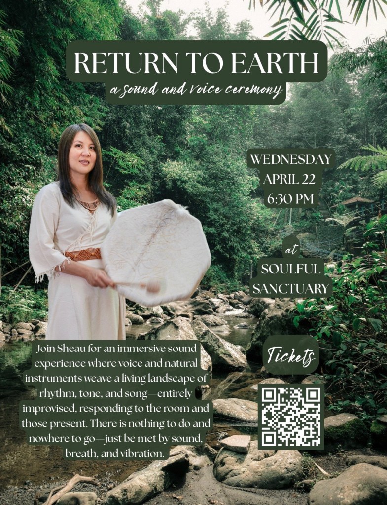 In honor of Earth Day, this Sound & Voice Ceremony is an intentional space to pause from the outside world and reconnect with the grounding presence of the earth and with yourself.